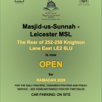 Masjud-us-Sunnah is a small masjid in size but a big one in its aspiration. Because of its position adjacent to the universities, colleges and the Leicester Royal Infirmary, Masjid-us-Sunnah aims to become a focal point for the Islamic Da'wah in Leicester, particularly among the students and the local population.